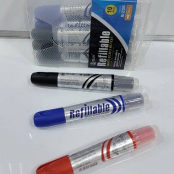 عبوة من 10 أقلام سبورة قابلة لإعادة التعبئة، تصميم عملي واقتصادي للكتابة الواضحة على السبورات البيضاء.