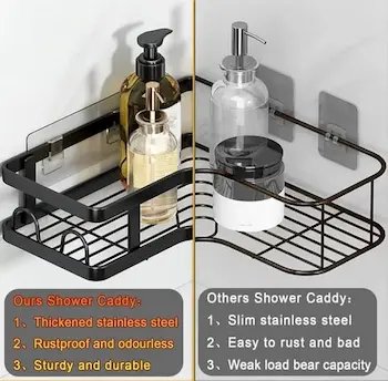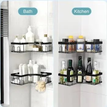 حل مثالي لتنظيم الحمام أو المطبخ! مجموعة من 5 أرفف زاوية مقاومة للصدأ، سهلة التركيب بدون أدوات، مع 12 خطافًا متعدد الاستخدامات للحفاظ على ترتيب وأناقة مساحتك.