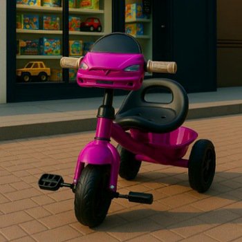 دراجة أطفال بتصميم سيارة رياضية فاخرة تجمع بين المتعة والأمان، بلون فوشي أنيق وهيكل قوي مثالي للعب داخل المنزل أو في الهواء الطلق.