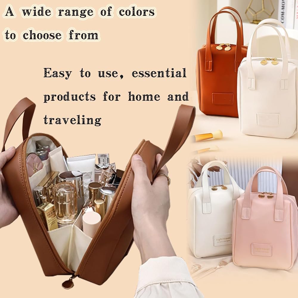 حقيبة مكياج عملية مقسمة بتصميم ذكي من جهتين وأقسام متعددة، مثالية لتنظيم أدوات التجميل ومستحضرات العناية أثناء السفر أو الاستخدام اليومي.