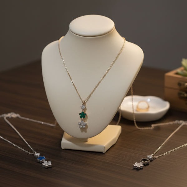 سلس راقٍ مزين بقلادة على شكل زهرة أنثوية ناعمة، يضفي لمسة من الجمال الطبيعي على أي إطلالة.