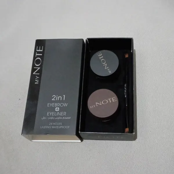 منتج MY NOTE 2in1 Eyebrow + Eyeliner يجمع بين تحديد الحواجب والكحل في عبوة واحدة، بتركيبة كريمية مقاومة للماء تدوم حتى 24 ساعة.