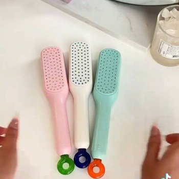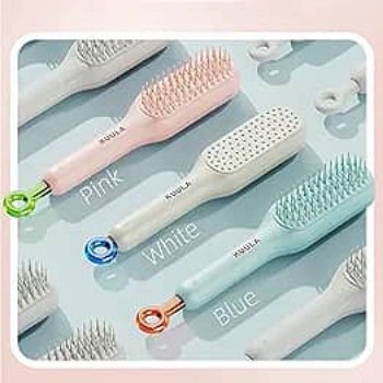 فرشاة عملية بتصميم قابل للطي وتنظيف ذاتي، تساعد على فك التشابك بسهولة وتدليك فروة الرأس بلطف لتعزيز صحة الشعر.
