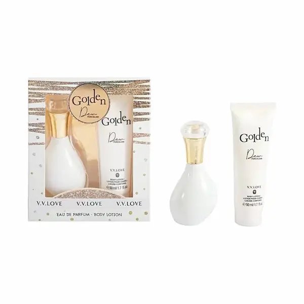 مجموعة Golden Dew Porcelain من V.V.LOVE النسائية تضم عطر Eau de Parfum فاخر مع لوشن للجسم بحجم 50 مل، تمنحك رائحة أنثوية ساحرة مع عناية فائقة ببشرتك.