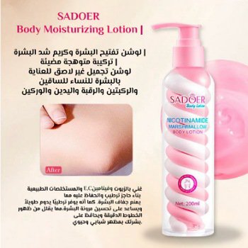 استمتعي بعناية متكاملة مع لوشن SADOER الممزوج بالسيروم والنيكوتيناميد، المصمم لتغذية البشرة وترطيبها بعمق مع الحفاظ على ملمسها المخملي.