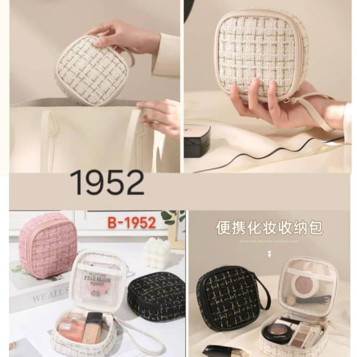 شنطة مكياج أنيقة متعددة الاستخدامات مصنوعة من نسيج فاخر مقاوم للماء، بتصميم عملي وسحاب ذهبي ناعم، مثالية للسفر والاستخدام اليومي.