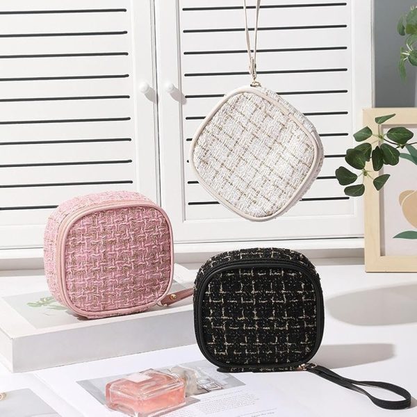 استمتعي بالأناقة والتنظيم مع شناط المكياج الفاخرة المصنوعة من نسيج صوف عالي الجودة بتفاصيل ذهبية منسوجة تضيف لمسة راقية وجذابة.