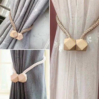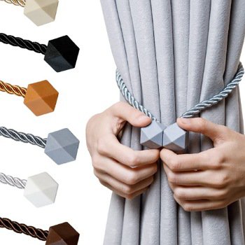 زوج من ربطات الستائر المغناطيسية بتصميم عصري يضيف لمسة فاخرة لديكور منزلك، تثبت الستائر بسهولة وبدون أي حفر.