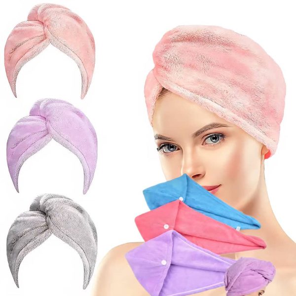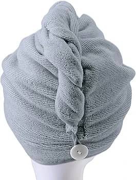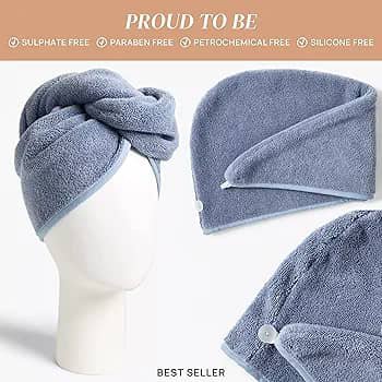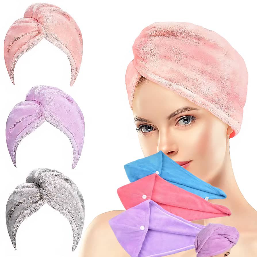 فوطة شعر من المايكروفايبر فائقة الامتصاص، خفيفة ومريحة، تجفف الشعر بسرعة دون تقطير الماء أو إثقال الرأس.
