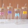 مجموعة أكواب زجاجية أنيقة على شكل علبة، مزودة بغطاء من الخيزران وقشة زجاجية قابلة لإعادة الاستخدام، مثالية للمشروبات الباردة والساخنة.