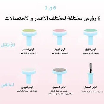 • 🔄 6 رؤوس مختلفة: 3 رؤوس مبطنة مخصصة للأطفال من عمر 0 حتى 12 شهرًا، 3 رؤوس للبالغين – للعناية بأظافرك أيضًا