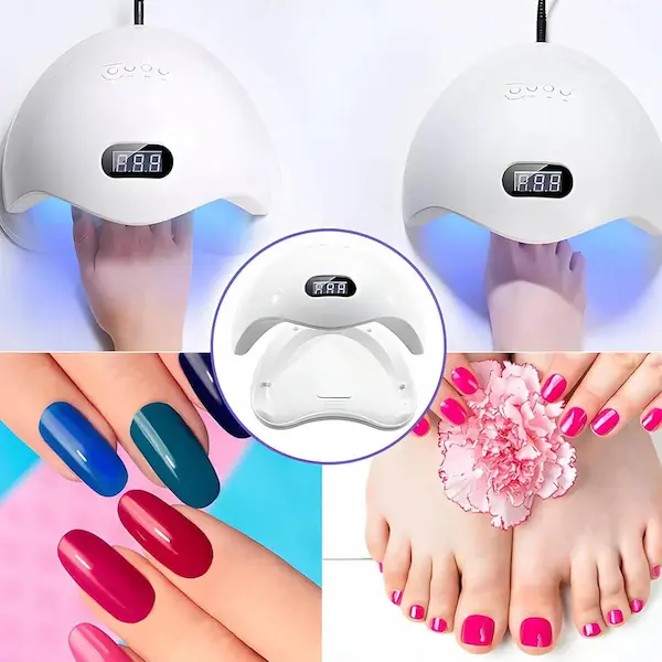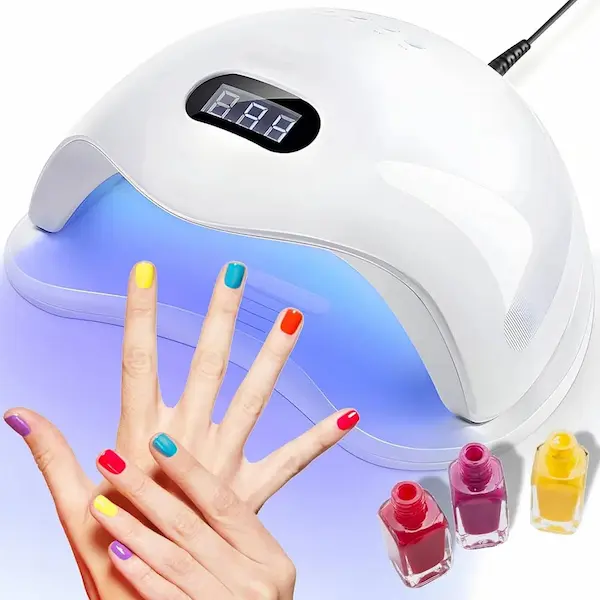 جهاز عملي لتجفيف المناكير بسرعة في المنزل أو صالونات التجميل. يمنح أظافرك لمعة جميلة وثباتًا طويل الأمد مع هواء بارد أو دافئ لتسريع التجفيف.