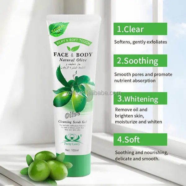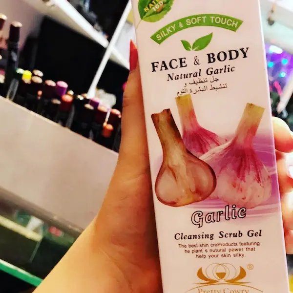 احصلي على بشرة ناعمة ومتجددة مع جل Pretty Cowry للتقشير والتنظيف، متوفر بنكهات طبيعية مثل الثوم، الليمون، الخيار، صفار البيض، والزيتون، مناسب للوجه والجسم.