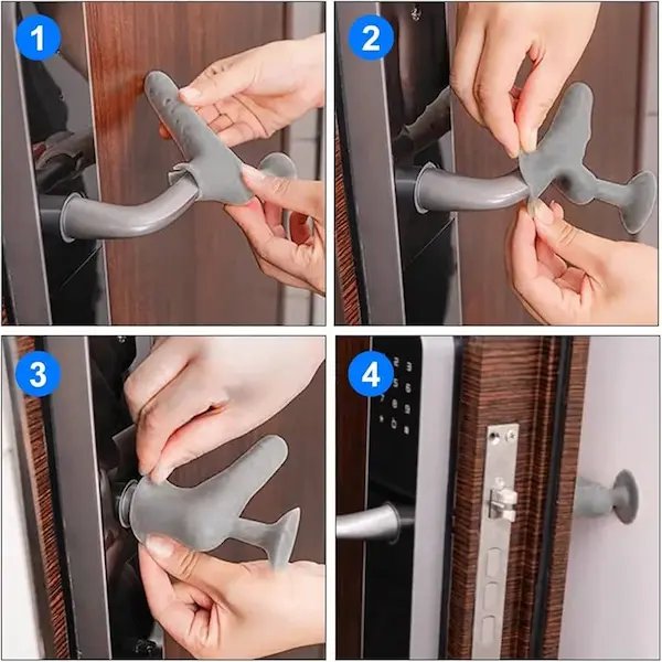 الحل المثالي هو صدادات السيليكون الواقية التي تمنع اصطدام المقابض بالجدران وتقلل الضوضاء عند الفتح والإغلاق:
