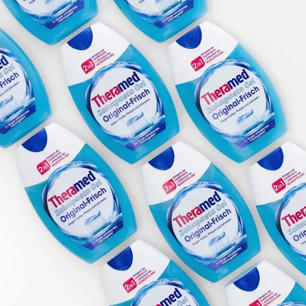 معجون Theramed 2×1 المحترف يجمع بين معجون الأسنان وغسول الفم في منتج واحد، يقضي على التسوس، أمراض اللثة، والبكتيريا، ليمنحك فمًا صحيًا وأسنانًا نظيفة، مناسب للكبار والصغار.