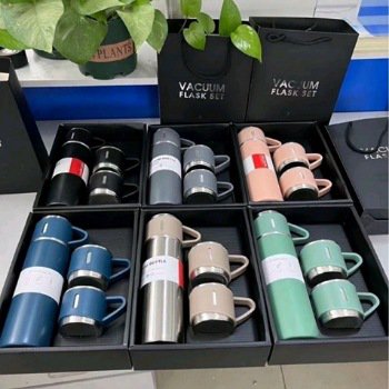 طقم فاخر حافظ للحرارة مكوّن من ترمس وكوبين