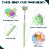 فرشاة أسنان مبتكرة بثلاثة جوانب لتنظيف شامل وسهل، بشعيرات ناعمة ومقبض مريح مضاد للانزلاق، مثالية للأطفال الصغار لضمان روتين عناية فموية صحي وممتع.