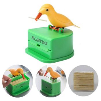 تقديم عود أسنان واحد عند الضغط على رأس الطائر، بطريقة صحية وسهلة الاستخدام.